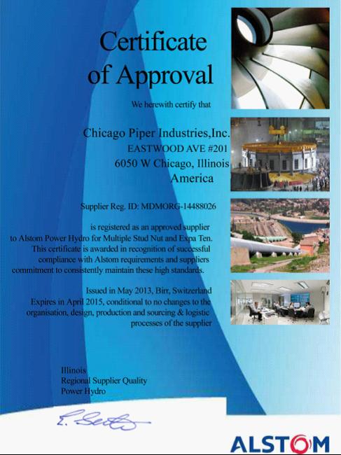 能源行業(yè)的國際性公司ALSTOM通過了對PIPER(派柏)公司的審核認(rèn)證,國際性公司阿爾斯通通過了對